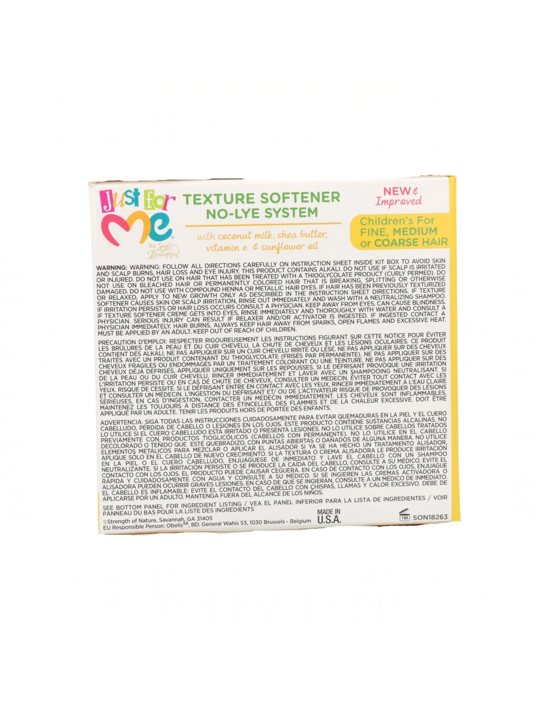 Kit Texturizador Just For Me: Suavizante sin Lye para Cabello Afro Infantil (Fino, Medio, Grueso) - 1 Aplicación