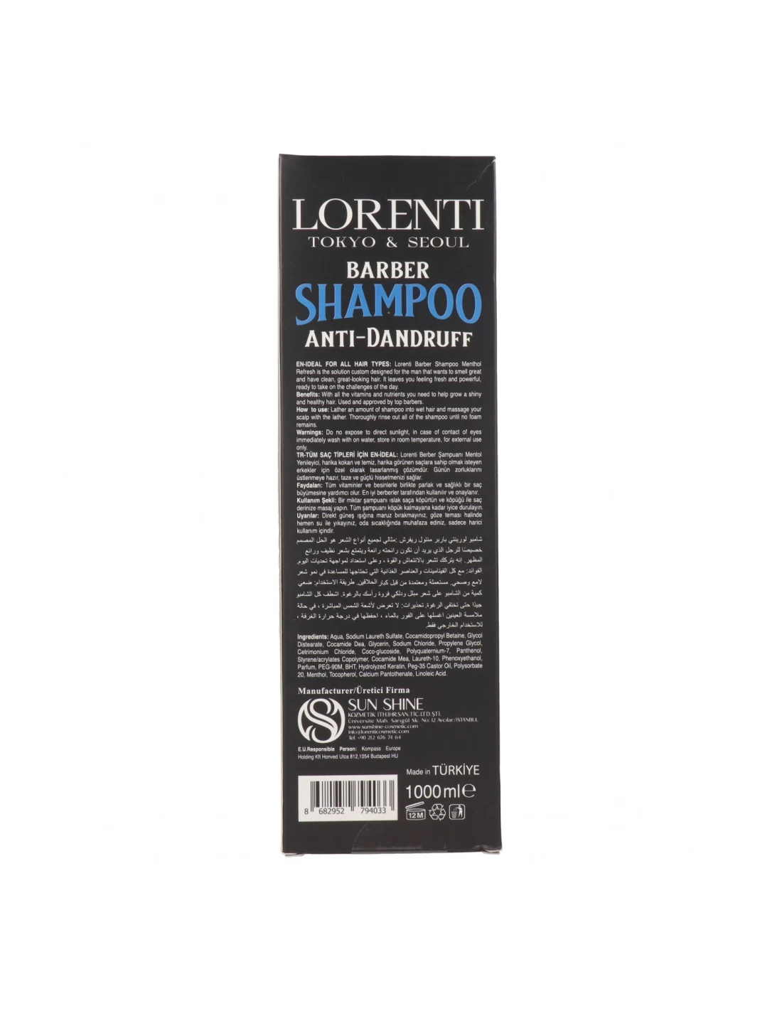 Lorenti Men Champú Anti-Caspa Menthol 1000ml - Cuidado Capilar Hidratante Refrescante para Hombres