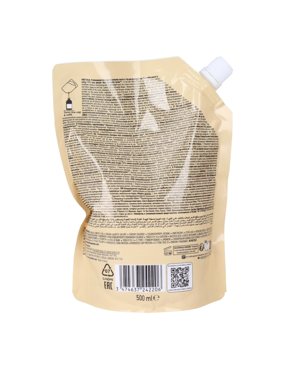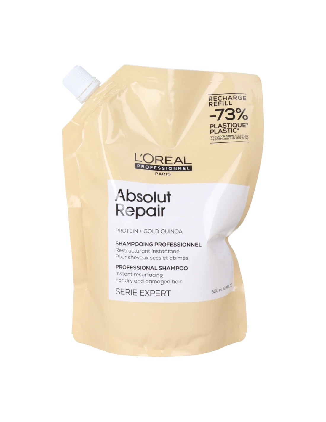 L'Oréal Expert Absolut Repair Champú Refill 500ml: Hidratante, reestructurante, cabello seco y dañado. Serie Expert. ¡-73% plástico!