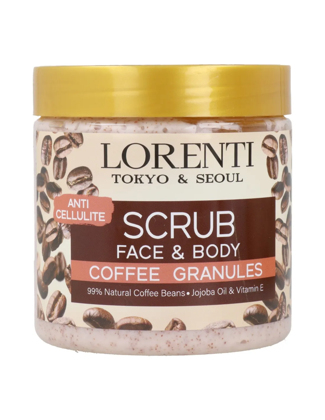 Lorenti Exfoliante Corporal y Facial con Granos de Café 500ml - Anti Celulitis, Jojoba y Vitamina E - Cuidado Personal