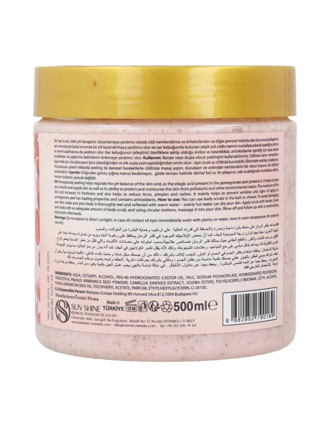 Exfoliante corporal Lorenti de granada, 500 ml: con semillas de granada, aceite de jojoba y vitamina E para una piel firme y radiante. ¡Compra ahora!